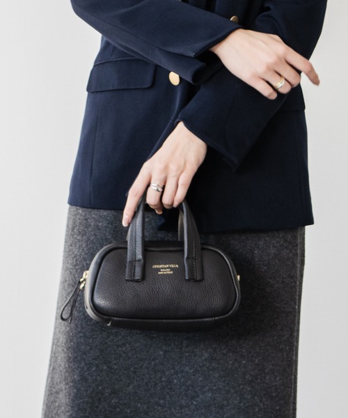 【CHRISTIAN VILLA/ クリスチャン ヴィラ】 デザイナーのChristian Villa (クリスチャン ヴィラ)によって、2013年に誕生したこのブランド。 ファッション業界で長年培われた経験のもと、イタリアの伝統的な技術にこだわり多機能且つファッショナブルなレザーバッグを提案しています。 ソフトなレザーの質感とサイズ感がフェミニンな雰囲気のハンドバッグです。 ストラップ付。内ポケット×1。 [メーカー参考型番]6355 ※生産過程に生じるキズが多少ある場合がございます。また素材の特性上、若干の色ムラ、擦れが見られる場合がございますが、こちらは素材の特性となります。予めご了承下さい。 ※サイズ換算(表記)はあくまで目安となります。