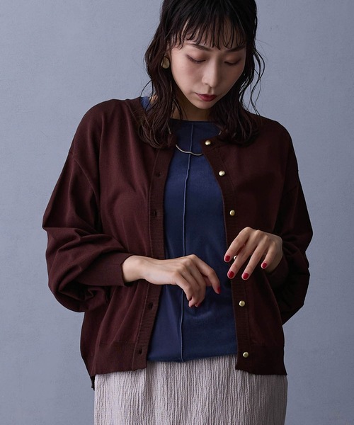 【ニットカーディガン】 NEWカラーで26SS登場 シリーズ品番:61056303【Fabric】12G/ハイゲージの天竺ニット【Design】シンプルなクルーネックに金ボタンがアクセントになったニットカーディガン。袖のパフがかわいらしさを出してくれます。ハイゲージ素材なので軽やかに、今シーズンから重宝できます。【Styling】金ボタンがアクセントなので、ニットだけでもコーディネートの主役として、前をあけてレイヤードスタイルにもピッタリ。スカーフやマフラー、柄ボトムなどを取り入れても◎色合い豊かなのでお気に入りの色を見つけて楽しめます。-------------------------■透け感:なし■裏地:なし■伸縮性:あり■光沢感:なし■生地の厚さ:普通-------------------------☆★お買い物をお楽しみいただく為に★☆★商品のお気に入り登録完売カラーの再入荷通知や、ラスト1点の通知、セールの通知も受け取ることができます。★ブランドのお気に入り登録新商品や再入荷等、ブランドのお得な情報をいち早く受け取ることができます。