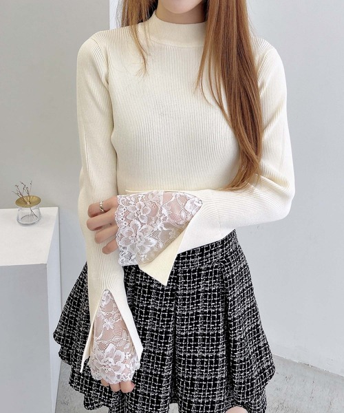 【袖口のスリットにレースをあしらったフェミニンなニットトップス】 ボディラインにフィットするコンパクトなシルエットでスタイルアップを狙えます。 顔周りをすっきり見せてくれるボトルネックも◎。 細リブが華奢見えを叶えます。 程よい裾丈はトップスインスタイルもおすすめ。 ベーシックで合わせやすいカラーが揃っています。 ・ニット製品のため生地に伸縮性があり、サイズに若干の誤差が生じる場合がございます。予めご了承くださいませ。 【以下アイボリー参考。カラーにより多少の誤差あり】 ・透け感:やや透ける ・伸縮性:あり ・生地の厚さ:普通 ・裏地:なし