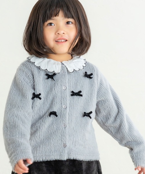 ふわふわのシャギー素材がやさしい肌ざわりで、見た目にも暖かく可愛いカーディガン。 コンパクトなシルエットで着ぶくれしにくく、秋冬のレイヤードスタイルにもぴったり。胸元にあしらわれたリボンが上品で、特別感のある一枚に仕上がっています。 各色に合わせた異なるリボンカラーは、コーディネートにアクセントをプラスしてくれます☆ [おすすめのコーディネート]ワンピースの羽織りとしてお出かけコーデに、デニムやスカートと合わせて普段使いにもおすすめ。フォーマルなシーンからカジュアルまで幅広く使えるアイテムです。ニット帽やブーツと合わせれば、冬らしい可愛さ満点のコーデが完成します♪ *DILのベビーサイズ商品は、全てホルマリン含有率の検査を通っておりますのでご安心下さい。 la poche biscuit(ラ・ポシェ・ビスキュイ)は、ナチュラルテイストに可愛いモチーフと、さりげなくトレンドを取り入れ、女の子に寄り添うワードローブを提案するブランド。 心躍る華やかなコーディネートが毎日をハッピーに彩ります。
