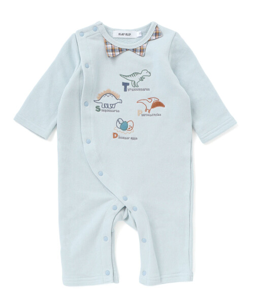 -25AW- 恐竜のヒレみたいなとげとげ襟がおしゃれな男の子用カバーオール。 ■デザイン 襟やひじのパッチがチェックになっているのがアクセントに。 フロントにはPOPなカラーであどけない表情で恐竜さんたちの刺しゅうをあしらいました。 恐竜さんたちの隣にはアルファベットをオン! それぞれ名前の頭文字になっているのわかったかな? 付属品がないのでお手入れしやすいのはうれしいポイント◎ 通園やお散歩などのデイリー使いからお出かけまで。 活躍するシーンの多いアイテムになっています。 サイドホックですべて開くので、首の座っていない赤ちゃんでも楽に着脱できます。 おなかにスナップボタンがあたらないのでうつぶせ・ずりばいの時期のベビーにぴったり◎ 股下にはスナップが付いていて、足をバタバタしてもはだけにくく、オムツ替えもラクラクな設計です。 イエローのチェックが映える男の子らしいブルー、周りと差のつくグリーンのチェックが印象的なグリーンの2色展開です。 ■素材/機能 身生地はウラゲ素材で着心地◎ ※柄の出方は生地の裁断により一点一点異なります。 25秋冬アイテム 【SLAP SLIP(スラップ スリップ)】 ~子どもの欲しいをカタチに~ ヨーロッパのこどものように 子どもらしい今しか着れないナチュラルなかわいさを提案 どこか上品で清楚感漂うフレンチカジュアルは いつものコーディネートをさりげなく格上げ