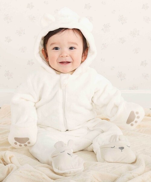 -25AW- カラーごとにモチーフが異なるもこもこボアのバギーオール。 ぽこぽこ柄になっているのがキュートなアイテム。 ■デザイン オフホワイト:まあるいお耳のクマさん ピンク:長いお耳のウサギさん グリーン:ツンツントサカの恐竜さん どれにしようか悩ましい3色展開です。 それぞれフードには耳やトサカがついているからフードを被ると現れるのがとってもかわいい。 袖口や裾口はくるんと折り返すと、手足を優しく包んでくれるから寒くなりがちな手の先や足の先もしっかりあたたか。 足口の折り返しには書くモチーフのお顔、袖口の折り返しにはクマさんやウサギさん、恐竜さんの足跡が◎ 細かいところまで可愛いデザイン♪ 足元まですっぽり包んでくれるので、防寒対策もバッチリ◎ 前開きファスナーでお着替えラクラク。 毎日の通園やお散歩にも大活躍のアイテムです。 ■素材/機能 モコモコ柔らかな肌触りのボアでベビーもニコニコ。 ※柄の出方は生地の裁断により一点一点異なります。 25秋冬アイテム 【SLAP SLIP(スラップ スリップ)】 ~子どもの欲しいをカタチに~ ヨーロッパのこどものように 子どもらしい今しか着れないナチュラルなかわいさを提案 どこか上品で清楚感漂うフレンチカジュアルは いつものコーディネートをさりげなく格上げ