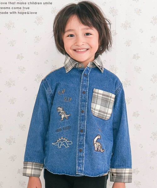 -2025AW- チェックの切り替えがおしゃれな男の子用長袖シャツ。 ■デザイン ブルー:切り替えのチェックが映えるデニム ベージュ:秋冬にぴったりなチェック×コーデュロイで上品さをプラス。 カラーごとに素材が異なるから、どっちも欲しくなる2色展開です。 襟や袖、ポケットがチェックとの切り替えになっているのがオシャレなアイテム。 フロントの刺しゅうは3体の恐竜さん。 刺しゅうの一部がパッチ刺しゅうになっているのがポイント。 襟端にも刺しゅうをあしらってさりげなくオシャレなアクセントになっています。 トップスとしての着用はもちろん、ボタンを全部開けてサラッとはおれるアウターとして着用するのもオススメ。 通園・通学などのデイリー使いからお出かけまで、活躍するシーンの多いアイテムです。 ■素材/機能 一番上のボタン以外はスナップボタンになっているから一人でのお着替えも◎ ▼お揃い(ブルー(デニム)のみ) 1802-77016:女の子用2点セット 1810-77048:女の子用スカパン ※胸ポケットあり ※柄の出方は生地の裁断により一点一点異なります。 ※生地の特性上、色落ちや色移りする可能性があります。 ※淡色製品とあわせての洗濯・着用に十分ご注意ください。 2025秋冬アイテム 【2025年9月のテーマ/World of imagination】 おもちゃ箱から飛び出したみたいな空想世界 カラフルな色づかいノスタルジックな色味を合わせてどこか懐かしさを感じるコレクション 【2025 AUTUMN / WINTER Plaid&Play-秋色チェックと遊ぶ-】 伝統的なチェックにビビットなカラーや子どもらしいモチーフをミックス。 動きやすく着心地のいい素材とシルエットで秋の落ち葉の中や秋風吹く中でも思いっきり遊んで冒険しよう。 【SLAP SLIP(スラップ スリップ)】 ~子どもの欲しいをカタチに~ ヨーロッパのこどものように 子どもらしい今しか着れないナチュラルなかわいさを提案 どこか上品で清楚感漂うフレンチカジュアルは いつものコーディネートをさりげなく格上げ