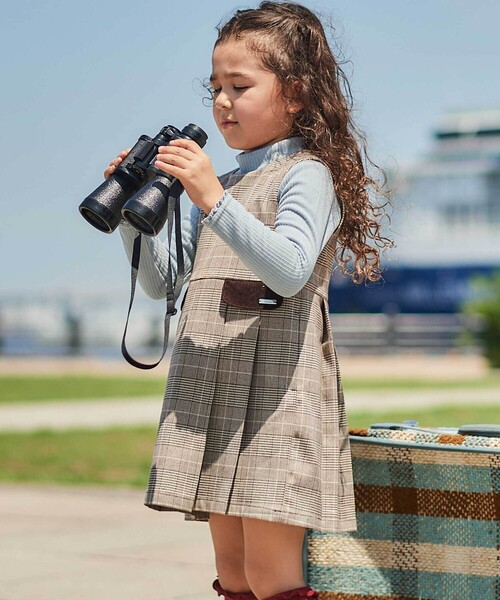 -25AW- カレッジライクな凛々しさのあるチェックのジャンパースカート。 ■デザイン 柔らかな質感のグレンチェックの生地を使用したトラッドな印象のデザイン。 ウエストのフラップにはダークカラーのコーデュロイ生地を使用してワンポイントに。 優しい雰囲気のブラウン系とすっきりとした印象のグレー系の2色展開。 インナーにタートルを合わせるかブラウスを合わせるかで印象が変わります。 ■素材/機能 しわになりにくく上品な光沢感が特徴のTR素材のグレンチェック生地を使用。 ウールのような温かみがありつつお手入れのしやすい素材です。 ▼お揃い 1110-77030:ショートパンツ 1109-77050:ロングパンツ ※柄の出方は生地の裁断により一点一点異なります。 ※100~150cmは両脇ポケットあり。 ※後ファスナー開き ※裏地あり 25秋冬 女の子アイテム 【9月テーマ②】 - オンフルール - 船はフランスのノルマンディー地方、オンフルールへ。 カラフルな木組みの家が立ち並ぶレトロな港町を散策しよう。 旧市街の街並みに溶け込むチェック柄を使ったトラッドな雰囲気のスタイリング。 ナチュラルな雰囲気の刺しゅうやカレッジテイストを取り入れたMIXスタイル。 【2025年秋冬 シーズンテーマ】 -クルーズ・私の行く先- レストランやブティック・劇場・図書館にカフェまるでひとつの街のように巨大な架空の豪華客船での船旅をイメージしたコレクション。 上質さや品の良さをベースに遊び心や楽しさをプラスしたブルジョワシックなスタイルを提案します。 【BeBe(べべ)】 ”LOVE MODERN” 少しおませで、生意気なヨーロピアンカジュアルの提案。 時代性・流行性をとらえ、ベーシックでもワンポイントを施した遊び心、楽しさを盛り込んでいます。 シンプルだけど、こだわりのあるオリジナリティーを重視しています。