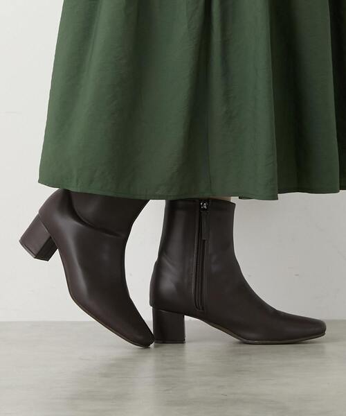 シンプルなフォルムのスクエアートゥのショートブーツです。 5cmの太めヒールで安定感があります。 中敷きに低反発のウレタンを入れ、柔らかい履き心地になっています。 パンツでもスカートでも合わせやすい筒丈に設定してあります。 ※包装紙破損、箱破損につきましては商品に不良が無い場合に限り出荷させていただいております。 ※画像の商品はサンプルです。実際の商品と色味、仕様、加工、サイズ、素材等が若干異なる場合がございます。