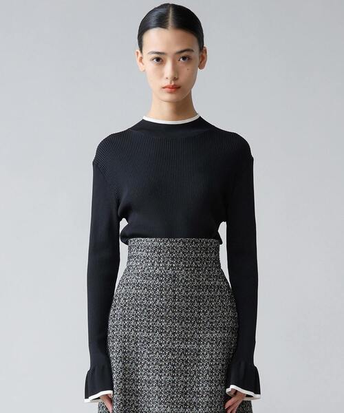 コンパクトなリブトップス。 すっきりとしたデザインながらも袖口のフリルが華やかな印象のニットです。 ブラウンとブラックはバイカラー仕様。 衿と袖口の配色がアクセントとなり、コーディネートを格上げしてくれます。 光沢がありしなやかで、肌触りがさらりとした接触冷感の素材。 伸縮性があり透け感も気にせずに着用していただけます。 程よい落ち感もあり、きれい目な素材です。 ■透け感 なし ■伸縮性 あり ■光沢感 なし ■裏地 なし ■生地の厚さ 普通