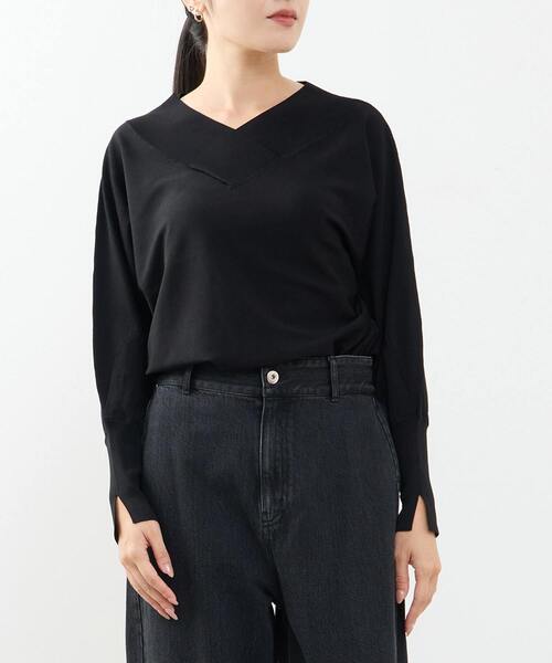 さらりとした肌触りでオールシーズン着られるハイゲージのニット。 ワイドなVネックは女性らしいヘルシーさがあります。 きれいめながらも程よくゆとりのあるドルマンデザインで、 肌にまとわりすぎずリラックスして着ていただける 何にでも合わせやすいトップスです。 光沢がありしなやかで、肌触りがさらりとした接触冷感の素材。 伸縮性があり透け感も気にせずに着用していただけます。 程よい落ち感もあり、きれい目な素材です。 ■透け感 なし ■伸縮性 あり ■光沢感 なし ■裏地 なし ■生地の厚さ 普通