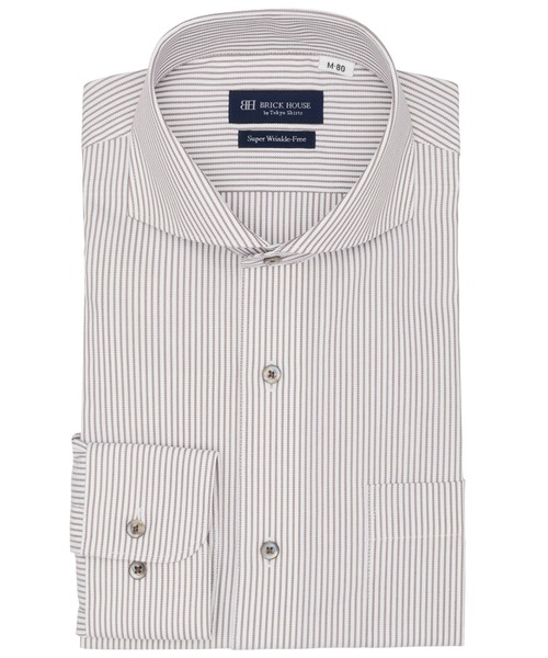 ◆ 超形態安定シャツ ◆ お手入れ簡単 メンズ超形態安定シャツ COOLMAX(R)を使用して吸水速乾に 優れた生地で、お手入れが さらに楽になった超形態安定シャツ。 ●高い形態安定性(W&W性) ●ポリエステル混で速乾性を実現 ●肌ざわりさわやか 着心地の良さと高い機能性を追及した 価値ある逸品をお届けします。 ブラウンストライプが季節感漂うシャツ。 スラックスやチノパン等、ボトムスを 変えることでコーデの幅を広げてくれます。 衿の開きがほぼ水平のホリゾンタル衿は 第一ボタンを外すと衿元がきれいに開き、 立体感のあるVゾーンを見せてくれます。 ■仕様 カフリンクス使用可能な兼用カフス (アジャストボタン) 中丸カフス 胸ポケット(左胸)付き(ホームベース型) 背タック・背ダーツなし 前立:裏前立仕様 衿キーパー:差込式(衿キーパーなし) ※サイズ[首回り42cm]のお届け商品の縫い付けタグはLL表記、 サイズ[首回り43cm]のお届け商品の縫い付けタグはXL表記でございます。 ZOZOTOWNの検索サイズと異なりますのでご注意ください。 【BRICK HOUSE by Tokyo Shirts / ブリックハウス バイ トウキョウシャツ】業界トップ水準を誇るノーアイロンの形態安定加工は自宅で洗濯可能でお手入れ簡単!高度な縫製技術を用いた高付加価値シャツでありながら選ぶことを気軽に楽しめます。ベーシックから多様なデザインまで幅広いバリエーションで豊富なサイズ展開で、ディテールの隅々にまで織り込んで一枚一枚丁寧に仕立てられたシャツです。