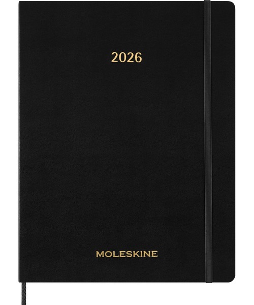 一週間のプランをすっきりと整理できる、XXLサイズのエッセンシャル プランナー。モレスキンらしさが際立つ洗練されたデザインと、しなやかで丈夫なカバーが魅力のスタイリッシュなプランナーです。見開き2ページのレイアウトで、1週間の予定をスマートにチェックできます。 月曜日から金曜日までは、朝7時から夜8時までを1時間ごとのスロットに区切って記入可能(土日は時間の区切りなし)。 各週のページには3か月分のカレンダーも掲載されており、長期的な視点で計画を立てるのにも便利です。 アポイントメントを管理できるこのノートブックは、教職員、学生、会社員など、あらゆる方のスケジュール管理に最適。 ご家族の予定を整理したい方にもおすすめです。 2025年10月から2026年12月まで、たっぷり使える15か月分の構成で、年末年始をまたぐ予定も逃しません。 バックポケットには、スケジュールを自由にカスタマイズできるシールや付箋が付属。 見たいページにすぐアクセスできるシックなブックマーク、内容物をしっかり保護するゴムバンド式の開閉デザインも備えています。 他のモレスキン製プランナーと同様、このエッセンシャル プランナーにも個人情報ページや年間予定表が含まれており、 長期的なスケジュール管理をサポート。巻末の白紙ページには、自由にメモやアイデアを書き留めておけます。 2025年10月~2026年12月しなやかな手ざわりのカバー縦に1週間のプランを記入できるレイアウト、1時間ごとのスロットでスケジュールをしっかり管理月~金の朝7時から夜8時まで、1時間ごとのスロットに分けてタスクを記入できるレイアウト土、日は時間ごとの区切り無し各週のページに3か月分のカレンダーを追加プライベートや仕事の予定をカスタマイズできるシール付き付属の付箋を使ってカスタマイズしさらに見やすく便利なツール:個人情報ページ、年間予定表、覚え書きに便利な白紙ページ丸みをつけたコーナー部分、ゴムバンド開閉式、同系色のブックマークリボンアイボリーカラーの70 g/m²中性紙使用マッチングカラーをほどこした拡張可能なインナーポケット見返しに印刷された「紛失物」ラベル180°平らに開くデザインモレスキンのこの製品には、FSC®(森林管理協議会)認証を受けた森林や、 厳しい品質管理下にある供給元から調達した紙材を採用しています。
