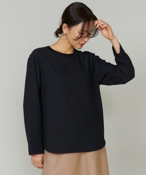 ■デザイン ナチュラルなストレッチ性とふんわりと滑らかな表面感のあるジョーゼット素材です。カットソーのような着やすさがありながら、きちんと見えが叶う万能ブラウス。衿ぐりにテレコを使用しているため伸縮性もあり、着脱が容易です。程よく身体から離れるシルエットはきちんと感はありつつ、リラックスした着心地です。裾にはバックスリットが入った遊び心のあるデザインにしています。 ■素材 ナチュラルなストレッチ性とふんわりと滑らかな表面感のあるジョーゼット。上品なドレープ性があり、戻りが効いていて、基本的にはシワになりにくいです。汗などを素早く吸う吸水・速乾性に優れています。 ・水洗い可 ■サンプル撮影商品 画像の商品はサンプルです。実際の商品とはサイズや色味、素材、デザイン等の仕様が若干変更になる場合がございます。