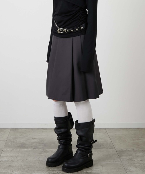 <fabric> ハリのある素材を使用し、シルエットがしっかりと出るよう仕立てました。 程よい厚みで、季節の変わり目にも頼れる一枚。 <style> 取り外し可能なラップポケットが特徴のデザインスカート。 簡単に着脱でき、スタイリングに合わせてアレンジを楽しめるアイテムです。 ポケット付きでモードな印象に、取り外せばシンプルなプリーツスカートとして着用可能。 気分やシーンに合わせて2通り楽しめます。 シャツやジャケットを合わせたきれいめコーデはもちろん、スウェットやTシャツでカジュアルダウンした着こなしもおすすめです。 【led.tokyo/レッドトーキョー】 TOKYOから生まれるファッション・アート・ 音楽・映画・漫画をはじめとした様々なカルチャーからのインスピレーションをコレクションに落とし込んでいます。 TOKYO的なファッション・カルチャーの ミックスアップ・編集感覚はそれぞれのアイテムに落とし込まれ、様々なスタイリングを生み出すことができます。 袖が取り外せたり、前・後ろで着られたり、 ひとつのアイテムから様々な着こなし、無限のスタイリングアイディアが生まれます。 ブランドが考えるルックブック的なスタイルではなく、着る人それぞれが自分だけのスタイルを生み出していく。 それが『led.tokyo』の考えです。 【お買い物をよりお楽しみいただくために】 ■商品のお気に入り登録(ハートマークをクリック) 完売カラーの再入荷通知や、在庫ラスト1点の通知、セールの通知を受け取ることができます。 ■ブランドのお気に入り登録 新商品がUPされたり売り切れ商品が再入荷したときなど、いち早くブランドのお得な情報を受け取ることができます。 是非ご利用頂き、お買い物をお楽しみください。