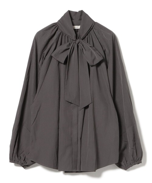 華やかなのに着回し力抜群 ■デザイン 大きなリボンが目を引くボウタイブラウス。取り外し可能なデザインで、リボンを外せばすっきりとしたバンドカラーブラウスとしても着用できる2WAY仕様。程良くゆとりのあるサイズ感で、どんなボトムスとも好相性なひと品です。 ■コーディネート 1枚着としてはもちろん、ワンピースやジャケット、ジャンスカなどのインナーとして重ね着するだけで、一気に今年らしいスタイリングが完成。スラックスやタイトスカートと合わせて、オフィスやフォーマルシーンにもおすすめです。 ■素材 さらりとした軽やかな素材感。 ■ケア方法 洗濯可(詳細は商品についている品質表示ラベルをご覧ください) ※光の当たり具合やパソコンなどの閲覧環境によって、実際の色味と異なって見える場合がございます。予めご了承ください。 ※商品の色味は商品単体で撮影した画像をご参照ください。