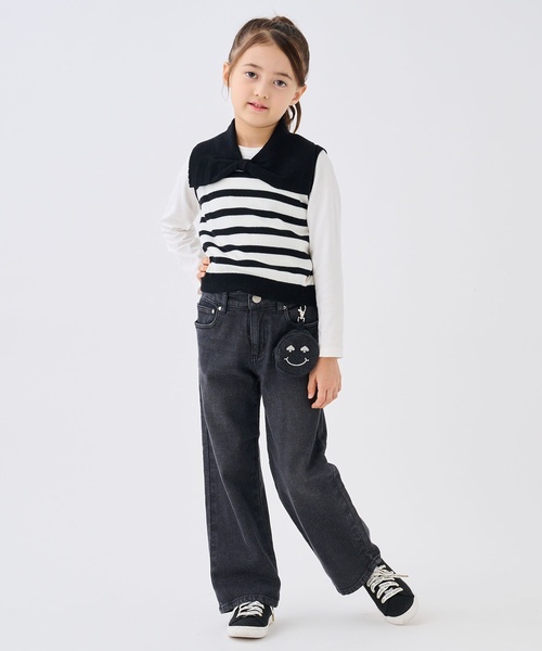 ストレッチ性に優れているデニム生地を使用したはき心地の良いロングパンツ。 ややワイドなシルエットに仕上げており、ゆったりと着用できます。 kate sapade new yorkオリジナルのスマイルマークを刺しゅうしたポシェットがセットです。 ウエストはアジャスターゴムつき。 両側にポケットがついています。 【おすすめの着用時期は秋冬シーズン】 【透け感】透けない 【生地の厚さ】普通 【伸縮性】あり 【裏地】なし 【ポケット】あり 【アジャスター】あり