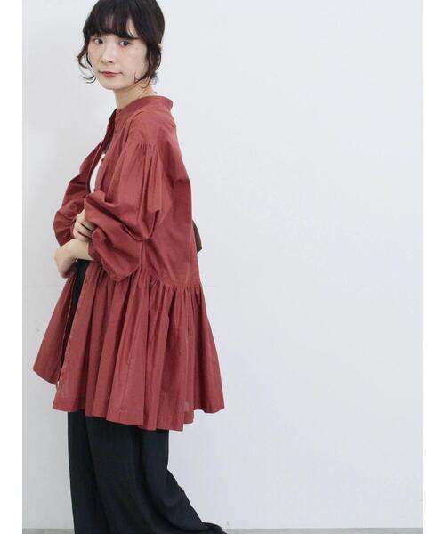 高い位置で切り替えられたギャザーがスタイルアップ効果を演出するブラウス。 裾に向かってふんわりと広がるシルエットが立体感をプラスします。 首元をすっきりと見せるバンドカラーがポイント。 パンツと合わせたメリハリのあるコーディネートがおすすめです。 ※商品画像は、撮影環境やお客様のご利用のPC・スマートフォンのモニター環境などにより実物と色味に差異がある場合がございます。 ※着用画像はサンプルを使用して撮影しております。製品と一部仕様が異なる場合がございます。予めご了承ください。 ★《お気に入り登録》でお得な情報をGET★ ① 商品ページ内のハートマークをクリック! ② 以下通知が受け取れます! 「再入荷」「ラスト1点」「特別セール」etc.. \ブランド、ショップのお気に入りも是非!/