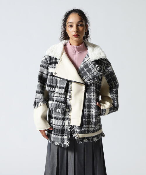 ROYAL FLASH 別注商品 左右で中柄と大柄の2種類の大胆なチェックを使用し、中央には無地モッサを組み合わせたマルチコンビネーションブルゾン。 カラーもマルチで他にはない目を惹くデザインが毎シーズン人気のおすすめアイテム。 フロントは斜めのジップ開きで、ライダースデザインの上襟はくるくるとした羊のフェイクファーがウォーム感を出してくれます。 右身頃はツイードチェック生地のフリンジがアクセントになったフラップポケット付きジャケット。 左身頃は、裾と袖口にライン入りのアシンメトリーデザイン。 ◯別注ポイント 中綿を入れて、真冬対応も可能にしています。 【AULA AILA/アウラアイラ】 自分らしさを大切にしながら、魅力を引き出し、 何気ない日常に彩りを添え、纏うという高揚感から心を豊かにする、大人のハイエンドカジュアル 【お買いものをお楽しみいただく為に!】 ▼商品のお気に入り登録 完売カラーの再入荷通知や、ラスト1点の通知、セールの通知も受け取ることができます。 ▼ブランドのお気に入り登録 新商品や再入荷など、いち早くブランドのお得な情報を受け取ることができます。