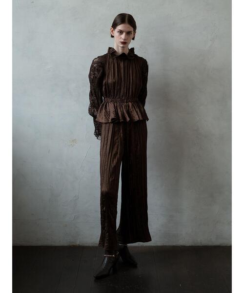 【2025 Autumn catalog掲載アイテム】ワッシャープリーツのデザインが表情感を演出するオールインワン。背面の首元にはリボンを施しており、後ろ姿のアクセントになります。ウエストのゴム切り替えがスタイルアップ効果をプラス。1枚で着用したり、お手持ちのカットソーとレイヤードしたコーディネートもおすすめです。※商品画像は、撮影環境やお客様のご利用のPC・スマートフォンのモニター環境などにより実物と色味に差異がある場合がございます。※着用画像はサンプルを使用して撮影しております。製品と一部仕様が異なる場合がございます。予めご了承ください。【その他採寸】F ウエスト:[ゴム仕様]64cm