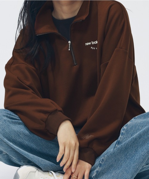 程よい肉感のダブルフェイス素材を使ったハーフジップのプルオーバー。ストレッチ性のあるやわらかな肌触りでとても着心地がよく、ゆったりとしたボリュームの袖とクロップド丈のシルエットが、ワイドパンツやスカートに合わせやすく、春秋シーズンのコーデで活躍するアイテム。
