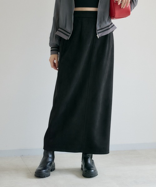 やわらかな季節感を感じるスカート<POINT>縦ラインを強調する、すっきりIラインシルエット。しなやかなスエード見え素材で秋らしさをプラス。秋冬の着こなしに寄り添う万能デザイン。【デザイン・シルエット】ストンと落ちるロング丈のIラインシルエットが、腰回りをなめらかにカバー。後ろスリット入りで動きやすさも兼ね備えています。ウエストは総ゴム仕様ながら、前側はフラットに仕上げているため、トップスインしてももたつかずきちんと感のあるルックスに。【素材感】上品な光沢としっとりとした質感が魅力のスエード見え素材を使用。軽さとやわらかな着心地、伸縮性のある快適さを実現。【カラー】ブラック ブラウン 2色展開【スタイリング】ブラウスとパンプスを合わせて、オフィスにも映える上品スタイル。ゆるニットとブーツを合わせて、季節感たっぷりのリラックスコーデ。裏地:なし光沢:ややあり伸縮性:あり透け感:なし生地の厚さ:普通ポケット:なし【cloche】”可愛くお洒落に”に応える、よりリアルな大人可愛いアイテムを提案します。※照明の都合上、多少の色ブレが生じてしまう可能性がございますので、予めご了承くださいますようお願い致します。---------------------------------------------------●お気に入り登録でお得情報を手に入れよう!「商品のお気に入り登録」をすると、再入荷通知や、ラスト1点の通知、セールの通知など、お得情報が届きます。また、マイページでいつでも確認が可能になります。「ブランドのお気に入り登録」をすると、新商品や再入荷、などいち早くブランドの最新情報をお届けします。ぜひ、ご利用ください。----------------------------------------------------