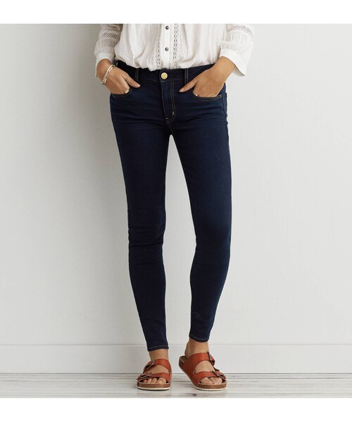 レッグラインにぴったりと寄り添うセクシーなフィット。 スーパーストレッチだから動きを妨げず一日中快適。 コットン43%、指定外繊維(テンセル)29%、ポリエステル19%、レーヨン8%、ポリウレタン1% 、スーパーストレッチデニム、レギンスのようなフィット感、フロントライズ約22cm、バックライズ約35.5cm、裾まわり約24.5cm お手入れ方法:洗濯機洗い