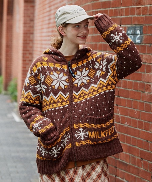 華奢な雪柄デザインがMILKFED.らしいカウチンニット 冬定番のカウチンニットは今年は華奢な雪柄デザインでバージョンアップ。 引手も雪柄模様のオリジナルデザイン。 ダブルジップ仕様でこなれた雰囲気、ボリュームのあるボトムとも合わせやすい◎ ザックリした編みで保温性が高く、アウター代わりにもおすすめ! 特徴的な模様が、着るだけで主役になるアイテムです。 ハンドメイド風の温かみがあり、ナチュラルで優しい印象に。 古着やアウトドアファッションとの相性も抜群。 トレンドに関係なく愛される定番アイテムです。 ・透け感:なし ・伸縮性:あり ・生地の厚さ:普通 ・裏地:なし 【MILKFED.(ミルクフェド)】 【取り扱い注意事項】 ・アテンションタグ・洗濯表示を必ずご確認の上、ご使用下さい。 ・画像の商品は光の照射や角度により、実物と色味が異なる場合がございます。 また表示のサイズ感と実物は若干異なる場合もございますので、予めご了承ください。 ・商品の色味の目安は、商品単体の画像をご参照ください。 ・画像の商品はサンプルとなります。実際の商品と色味、仕様、加工、サイズ、素材等が若干異なる場合がございます。 ・予約商品など一部商品につきましては、生産の都合上、お届け時期が前後する場合がございます。 《お気に入り登録》のオススメ! ▼商品のお気に入り登録 再入荷通知や、残り1点の通知、セールなどの通知も受け取ることができます。 ▼ブランドのお気に入り登録 新商品や再入荷など、ショップのおすすめトピックスなどお得な情報をいち早く受け取ることができます。