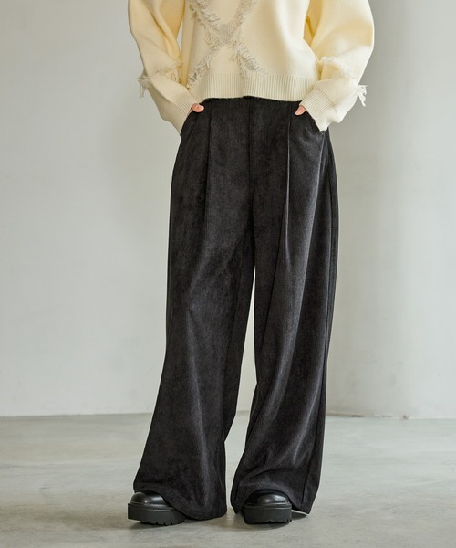 ワンタックデザインを施したコーデュロイパンツ。 太すぎないほどよいゆとりのあるシルエットをお楽しみいただける1枚です。 【素材】 あたたかみを感じるコーデュロイ素材。 厚すぎず伸縮性のある生地感で穿きやすさも〇 【スタイリング】 ワイドなシルエットなのでコンパクトトップスとの相性〇 カジュアルなアイテムですがジャケットを合わせたスタイリングもおすすめです。
