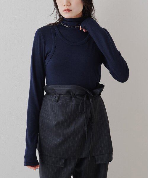 【2025AW】 別々にも着回せる、万能なトレイヤードトップス ■タートルネックプルオーバーとタンクトップがセットになった一着。 ■美しい光沢とストレッチ性が特徴的なウール100%素材を使用。 ■きめ細やかなウールはソフトで肌触りも良く、着心地が良いのも◎ ■すっきりと見えつつ、身体のラインを拾いすぎない絶妙なサイジングもポイント。 ■それぞれ単品でも着用でき、コーディネートの幅を広げてくれるアイテム。 【COLOR】 チャコールグレー:カジュアル見えを抑えた落ち着きのある大人グレー。 ネイビー:スマートな印象を与える凛としたネイビー。 【MATERIAL】 細番手のウール糸を使用したきめ細やかな表情が特徴的な素材。 ---------------------------------------------------- 洗濯方法:手洗い可 透け感:なし 裏地:なし 伸縮性:あり 光沢感:なし ---------------------------------------------------- 【注意事項】 ・画像の商品はサンプルです。実際の商品と仕様、加工が若干異なる場合があります。 また 、パソコンやスマートフォンのモニター環境などにより、色味が違って見える場合があります。 ・店頭及び屋外での撮影画像は、光の当たり具合で色味が違って見える場合があります。 商品の色味は、スタジオ撮影の画像をご参照ください。 ・入荷状況により、お届け予定が前後する場合があります。 ・お客様への発送が店頭販売より遅れる場合があります。 ・追加生産商品は、一部の店舗、通販で販売中の場合があります。 予めご了承下さい。 【気になるアイテムは、「お気に入り」登録を】 ハートマークをクリックしておくことで、スムーズにお買い物が楽しめます。 ・ラスト一点のお知らせ ・再入荷のお知らせ ・SALEのご案内