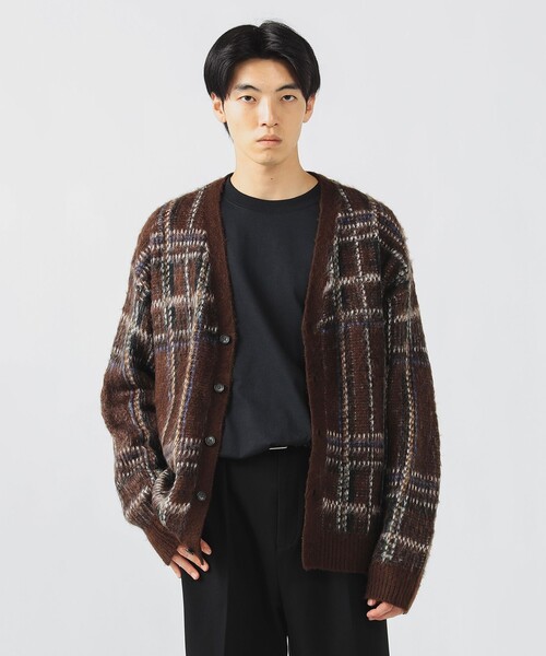 温かみのあるシャギータッチのカーディガン ■デザイン 大胆な大柄パターンが目を引く、Vネックカーディガン。羽織るだけでコーディネートの主役になる、存在感のある1枚です。シンプルなアイテムと合わせても、雰囲気を演出し、秋冬のスタイルに彩りを加えます。 ■コーディネート フェードのかかったデニムと合わせたグランジスタイルや、スラックスとローファーを合わせた、少し着崩した大人の着こなしもおすすめです。 ■素材 シャギータッチのアクリル素材を使用しており、やや厚みのある生地感が魅力です。 ※光の当たり具合やパソコンなどの閲覧環境によって実際の色味と異なって見える場合がございます。予めご了承ください。 ※商品の色味は商品単体で撮影した画像をご参照ください。