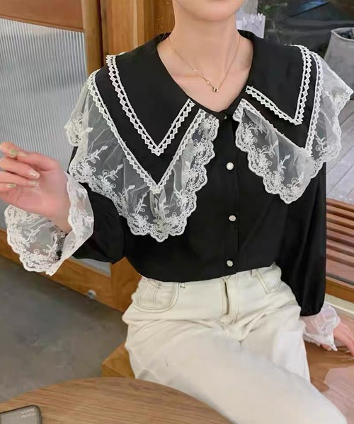 大きい襟とレースがかわいい! コーデの主役になるブラウス全2色♡ ▷ POINT フリル襟が2枚重ねになった大きな襟が目を惹く フリルレースがかわいいブラウス。 肩のラインを拾う大きめ襟で小顔効果や ふんわりしたボリュームのある袖は 気になる二の腕をカバーできます♡ 1枚で着るのはもちろん重ね着でも使えるので ワンピースやカーディガンからフリル襟を出して レイヤードコーデにもおすすめです。 ▷ COLOR ・ブラック ・ホワイト ___________________ ▫ Information 【♥】アイテムをお気に入り( カートの右のハートをクリック ) お気に入りアイテムの値下げ、再入荷通知在庫1点などの通知を受け取ることができます 【♥】ブランドをお気に入り( 上部のブランド名をクリック ) 新商品や再入荷、クーポン配布などセールの通知を受け取ることができます ▫ shopnikoniko ショップにこにこは韓国ファッションを中心にトレンドアイテムがプチプラで揃うレディースアパレルショップ ▫ Instagram ショップにこにこのアイテムを使ったコーデはインスタ( @shopnikoniko )をチェック ___________________ レディース 韓国 プチプラ 流行り トレンド 人気 おすすめ おしゃれ かわいい シンプル 韓国カジュアル 韓国ガーリー フレンチガーリー ワンホン 淡色女子 オフィス 春 夏 秋 冬 トップス 長袖 襟付き ピーターパン襟 セーラーカラー レース襟 袖フリル 体型カバー 二の腕カバー レイヤード 入学式 入園式 卒業式 卒園式