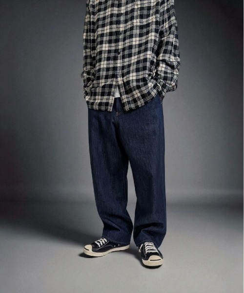 ■デザイン ワークテイストをベースにした、ゆったりとしたバギーシルエットのデニムパンツ。腿から裾にかけて広がるワイドなラインが特徴で、ボリューム感のあるスタイルを演出します。 ツイストディテールを取り入れることで、シンプルながら個性を感じる一本に仕上げています。 ■素材 ナチュラルな風合いとタフさを持つデニム生地を使用。しっかりとした厚みがありながらも柔らかく馴染み、穿き込むほどに風合いが増していきます。 ■コーディネート シャツやジャケットと合わせてワークライクに仕上げるのはもちろん、スウェットやTシャツとのカジュアルスタイルにもマッチ。スニーカーやブーツなど幅広いシューズと相性抜群です。 【マルチサイズとは】 豊富なサイズ展開のため、 「骨格ストレート/骨格ウェーブ/骨格ナチュラル」など様々な体型の方も、 自分に合った1枚が見つかる新しい洋服の買い方です。 「低身長~高身長」「やせ型~ぽっちゃり」など小さいサイズから大きいサイズまで、最大56サイズご用意しています。 定番アイテムから、ビッグシルエットなどのトレンドアイテムまで幅広く展開中! ※マルチサイズは、ZOZOTOWNのみでのお取り扱いになります。 ※サンプル品で撮影しているため、ボタンやファスナーなど一部の仕様が若干異なる場合がございます。 【注意事項】 この商品はご注文を受けてから生産を行う受注生産商品のため、発送までにお時間をいただきます。 カート投入後の画面にて発送日の目安が表示されますのでご確認ください。