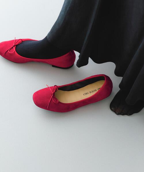上質なレザーで仕上げた、長く愛せる永久定番のバレエシューズ【Design】薄く柔らかなシープスキンレザーを使用し、足当たりの良さにこだわりました。履くほどに足に馴染んでいく、レザーならではの特別な履き心地。足元をすっきりと見せてくれる、クラシックなバレエシューズのデザインです。上品なリボンが、さりげなく女性らしさを引き立てます。インソールには抗菌・防臭加工を施し、快適さにもこだわりました。【Styling point】フェミニンなワンピースやスカートにはもちろん、デニムやパンツスタイルにもしっくりと馴染みます。通勤から休日のお出かけまで、様々なシーンで活躍する万能なシューズです。【2025 Autumn/Winter】【25AW】※靴箱破損につきましては、商品に不良が無い場合に限り出荷させていただいております。予めご了承ください。重量(片足) : 約115g※商品画像は、光の当たり具合やパソコンなどの閲覧環境により、実際の色味と異なって見える場合がございます。予めご了承ください。※商品の色味の目安は、商品単体の画像をご参照ください。▼お気に入り登録のおすすめ▼お気に入り登録された商品は、マイページにて現在の価格情報や在庫状況の確認が可能です。お買い物リストの管理にぜひご利用ください。383736