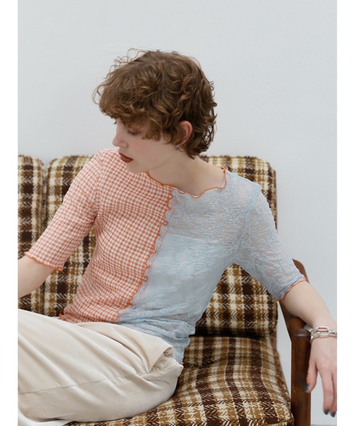 【2サイズ展開】 ・XSサイズ:低身長女性向けサイズ ・FREEサイズ:S-Mサイズ相当 ________ 異なる色を巧みにパッチワークしたデザインで どの色味を選んでも一枚で着映えする主役級トップスが登場しました 五分袖なので春先から梅雨、長い夏〜秋までと シーズンレスに楽しめるのが嬉しいポイント 透け感のあるシアー素材が軽やかに揺れ 季節の変わり目にもぴったりです 袖口や裾にはメローの縁取りを施し、フェミニンな印象をプラス 肩や二の腕をほっそり見せてくれる視覚効果もあり 体型カバーにも頼れる一着です 素材は伸縮性があり、さらっとした肌ざわりで着心地も抜群 ジャケットのインナーにしても、シアー感が程よい抜け感を作り出し レイヤードスタイルにも映えます 忙しい朝でも迷わず手に取りたくなる スタイリングを一瞬で決めてくれる頼れるトップスです ・blue×brown:ビビッドなブルーと大人のチョコレートブラウンの配色。遊び心がありながらも、シックにまとまる絶妙なバランスで、コーデの主役になりたい方にぴったりの一枚です。 ・orange×baby blue:ペールトーン同士の優しい配色は、まさにKatrinらしい絶妙カラー。カラー×カラーでも柔らかな印象に仕上がり、普段色物を着ない方にもおすすめです。 ・ivory × ivory:ワントーンでまとめたアイボリーは、合わせやすさ抜群ながらデザイン性も高く、シンプル派さんにも刺さるカラー。大人っぽく着たいかた、カラーボトムや小物が多い方におすすめしたいカラーです。 【Katrin TOKYO】 『好きな物に埋もれて暮らす』をコンセプトに、長く愛せるベーシックアイテムにヒトクセ加えたラインナップを展開。 他には無い色味の服と、それらを組み合わせた新鮮なカラーコーデ提案が魅力です。 公式Instagramでは様々なスタイリング提案や、作成のこだわりをご紹介しています。 【Caraサイズとは?】 『小柄女性が”着られる”ではなく、”着たい服を”』をコンセプトにしたCara by Katrin TOKYO。 Katrin TOKYOのデザインや世界観をそのままに、154cm以下の小柄女性向けにお作りしたサイズ。 ※ZOZOTOWNではXS/XS-Short/XS-Regular/S-Shortサイズ表記となっています。 公式Instagramでは様々な低身長・小柄スタッフの着用写真やインスタライブで実際に着た様子などをご覧いただけます 【素材】 ・レース部分:ナイロン55%、コットン35%、ポリウレタン10% ・チェック部分:ポリエステル60%、コットン38%、ポリウレタン2% 透け感:★★★★☆ 厚み:★☆☆☆☆ 伸縮性:★★★☆☆ 【サイズ】 ・XSサイズ (※低身長女性向けCaraサイズ) 着丈:51cm 身幅:36cm 肩幅:35cm 袖丈:27cm ・FREEサイズ(S-Mサイズ相当) 着丈:55cm 身幅:39cm 肩幅:38cm 袖丈:29cm 【お洗濯について】 家庭洗濯:不可 ドライクリーニング:可 ※詳細は商品にございます洗濯表示に従ってお取り扱いください。