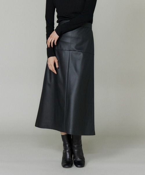 ■デザイン柔らかなフェイクレザーで仕立てたセミトラペーズスカート。長めのミディー丈、落ち感のあるシルエットが甘くなりすぎず、コーディネートをモードに仕上げてくれます。本革のような本物感のある着心地の良さを感じられる1着です。■素材乾式の肉厚合成皮革。幅広いアイテムに使用いただける肉感に仕上げた汎用性の高い合皮です。フェイクレザーならではの着心地の良さと上品な光沢が魅力です。・裏地あり・ストレッチあり・後ろファスナーあり・後ろポケットあり■サンプル撮影商品画像の商品はサンプルです。実際の商品とはサイズや色味、素材、デザイン等の仕様が若干変更になる場合がございます。