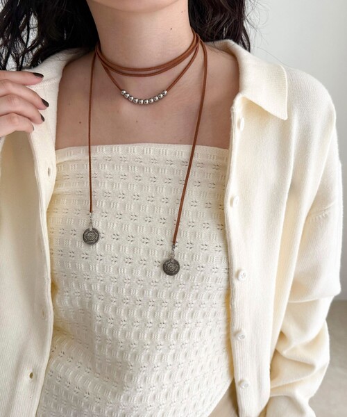 ◇fredy emue◇【2025 AW】アレンジが楽しめるビンテージ風マルチチョーカー●point・ビンテージ感たっぷりに仕上げたマルチチョーカー・ぐるぐると巻いて重ね付け風に楽しめるデザインで、1本でコーディネートのアクセントに・巻き方を変えることでスタイルに合わせて自由にアレンジ可能・自分用にはもちろん、ギフトとしてもおすすめのアイテムです◇商品のお気に入り登録◇【お気に入りに登録】を是非ご活用ください。 再入荷の通知がいち早く届きます。●お取扱い上のご注意●*アテンションタグを必ずご確認の上、着用又はお取り扱い下さい。*店頭及び屋外での撮影画像は、光の当たり具合で色味が違って見える場合があります。商品の色味は、スタジオ撮影の画像をご参照下さい。*商品画像に関しては出来る限り忠実に表示出来るよう努めておりますが、お客様がご利用のモニターの設定及び特性により、実際の商品と比較し色味に若干の誤差が生じる場合があります。*生地の特性上、やや匂いが強く感じられるものもございますので予めご了承下さい。*雨や汗による、濡れた状態での使用は、色落ちや色移行の原因となる場合がありますので十分にご注意下さい。※サンプルでの採寸のため、サイズ表はあくまで目安となります。予めご了承ください。