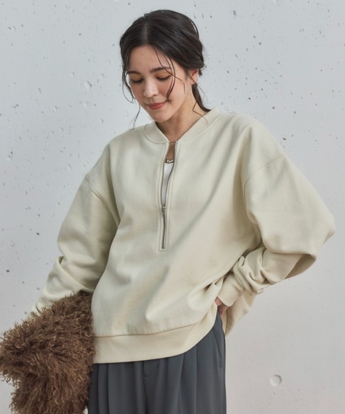 人気のスウェットが進化して再登場!【point】・ハーフジップにすることでお好みのアレンジができます・開いてスキッパーのように着ればインナーのレイヤードも◎・シンプルだからこそシルエットで今っぽさを・ボリューム感のある袖とゆとりある身幅がリラクシーな着心地【fabric】・綿100%のしっかりとした柔らかい素材・「よれない」「透けない」「長持ちする」程よい厚みの US コットンを使用・ご自宅でのお手入れ可能透け感:なし裏地:なし伸縮性:あり光沢感:なし生地の厚さ:普通【注意事項】・画像の商品はサンプルです。実際の商品と仕様、加工が若干異なる場合があります。・サイズ表記はあくまで目安となります。・取り扱いについては、商品についている品質表示でご確認ください。・照明の関係により、実際より明るく見える場合がございます。またパソコンなどの環境により、製品と画像のカラーが若干異なる場合がございますので、予めご了承くださいませ。■お気に入り登録がオススメです!■《商品のお気に入り登録》カラー・サイズ選択の横の「♡」をクリックで簡単に登録できます完売カラーの再入荷や在庫が1点になったとき、セールになったときに通知をお届けします《ブランドのお気に入り登録》ページ上部のブランド名の「♡ お気に入りブランドに追加」をクリックで簡単に登録できます新商品の情報やイベントなどお得な情報をいち早くお届けします是非、ご登録お願いします♪