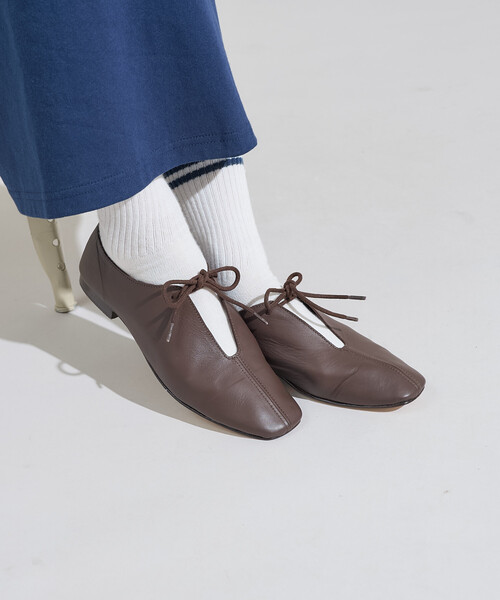 2025 Fall & Winter item華奢なリボンがアクセント柔らかレザーのフラットシューズ●柔らかく薄手のレザーを使用した、上品なバレエシューズ●一つの紐を結んで着用すると、華奢なリボンになるデザインがさりげないアクセントに●足元に女性らしいニュアンスをプラスします●しなやかなレザーが足に優しくフィット。履き始めから足馴染みが良く、快適な履き心地です●幅広いスタイルにマッチするシンプルながらも洗練されたデザインで。カジュアルからきれいめまで、様々なコーディネートに合わせやすい一足です---------------------------------------------------------お気に入り登録のオススメ▼商品のお気に入り登録▼再入荷、残り1点、セールなどの通知を受け取ることができます。▼ブランドのお気に入り登録▼新商品や再入荷、ショップのおすすめトピックスなど、いち早くブランドの情報を受け取ることができます。---------------------------------------------------------※掲載画像の商品の色味は、屋外や屋内の光の照射や角度により実物と色味が異なる場合がございます。また表示のサイズ感と実物は若干異なる場合もございますので、予めご了承ください。※着用、お取り扱いの際は、商品についている品質表示とアテンションタグを必ずご確認下さい。【SOFI/ソフィー】'自分が納得のいくベーシックスタイルを見つける'という永遠のテーマを掲げたブランドSOFISOFIはアイディアでファッションを楽しみ独自のスタイルのべーシックや哲学がある何を身につけるかではなく、どのように纏うかを自分の中に潔く持っている人という人物像を掲げています。多種多様なスタイルや時代に寄り添い馴染むタイムレスでエイジレス色褪せない魅力のあるアイテム展開で生活に彩りを添えます。