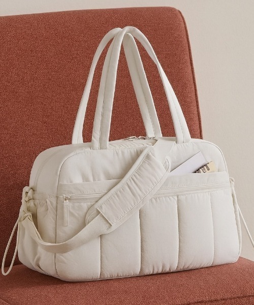 ◆POINT◇・軽量で持ちやすいキルティング素材・ショルダー&ハンドルの2WAY仕様・サイドポケット付きでペットボトルや小物も収納可能・大容量で通学・通勤・旅行に最適・ベーシックカラーから差し色まで豊富な展開・ユニセックスで使えるシンプルなデザイン◆DETAIL◇ふんわりとしたキルティング素材で仕上げた、軽量で柔らかな2WAYボストンバッグ。ショルダーとハンドルの2WAY仕様で、シーンに合わせて使い分け可能。サイドポケットや大きめのフロントポケットも備えており、収納力も抜群です。デイリーから旅行、ジムバッグとしても活躍する万能アイテム。【サイズ】約30×19×42cm【色展開】ホワイト/ブラック/ベージュ/ブルー/ピンク◆着用レビュー◇【スタッフA:身長155cm/骨格ストレート】普段荷物が多い方でもしっかり入る容量。ショルダーにすればバランスが良く、電車移動や旅行にも便利でした。【スタッフB:身長160cm/骨格ウェーブ】肩掛けでも大きすぎず、女性らしいコーデにもなじみやすいサイズ感。PCや着替えも入るので1泊旅行にも安心。◆キーワードボストンバッグ/ショルダーバッグ/2WAY/ユニセックス/キルティングバッグ/トラベルバッグ/大容量バッグ/デイリー/通学/通勤/ジムバッグ/旅行/秋服/冬服※生産の特性上、商品画像との色差が多少出る場合がありますのでご了承ください※着用身長によって画像イメージと異なる場合があります。 ※撮影環境により、実際のカラー、形状、デザイン等多少異なる場合がございます。 《 お知らせ 》 ▼商品のお気に入り登録 お気に入りアイテムの値下げ・再入荷・在庫1点などの通知を受け取ることができます。 ▼ブランドのお気に入り登録 新商品や再入荷、セール、クーポン配布などお得な情報を受け取ることができます。是非、お気に入り登録してみてください!