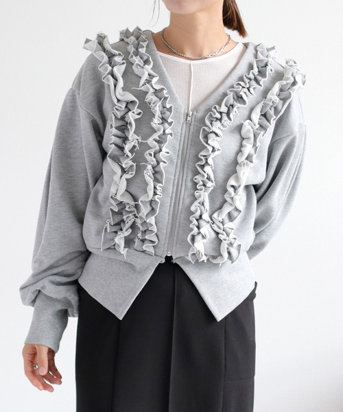 たっぷり入ったフリルが大人可愛いVネックジップカーディガン! フェミニンな女性らしい雰囲気を演出してくれます☺︎ どこから見られても、360度可愛いアイテムです♪ ◇Point◇ 「可愛い〜」思わず声がこぼれちゃう、スウェット仕立てのVネックジップカーディガン! どの角度から見ても、お洒落上級者見え◎袖もボリュームスリーブでふんわり感をイメージ。 たっぷりフリルに目が行くので、上半身の厚みが気になる方も華奢見え☺︎ 袖や裾のリブを太めにしており、キュっと絞ってあるのでシルエットにメリハリが付き、体型カバーにもなりますよ♪ 裾にかけてふんわり広がるデザイン。お出かけ時や長距離の移動も心地よく着用して頂けます☺︎ 秋はロンTで。冬はこの上にコートやダウンを羽織ってロングシーズンで活躍する大人カジュアルカーディガン! デイリーにも、ちょっとしたお出かけにもフィットする万能すること間違いなしです♪ ◇Material◇ ⚫︎可愛らしいフリルに注目!画像で見てみてくださいね♬ ⚫︎柔らかいコットンとポリエステル素材♪シワになりづらい生地です。 ⚫︎裾がキュッと絞られているデザイン。袖もリブが太めなのでボリューム感が強調されています。 ⚫︎柔らかい着心地なので長時間着用しても楽ちんな着心地 ⚫︎フロントのジップは上下の開け閉め可能☺︎ ⚫︎ウォッシャブル ◇Coordinate◇ スタッフオススメの着用は、ロンTとのレイヤード! シンプルなロンTもこれさえ羽織れば華やかに♪ デニムを履いてキャップやスニーカーを履いて、甘辛コーデも! ※照明や天候により実際の色味と異なって見える場合がございます。ご了承くださいませ 【キーワード】 #Y2K#10代#20代#30代#40代#50代#フェミニン#カーディガン
