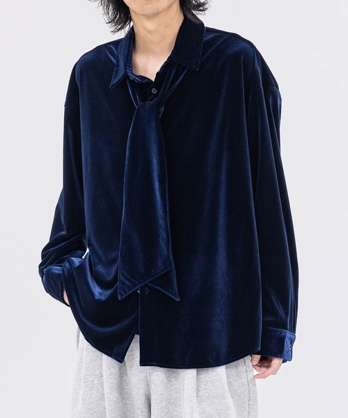 【デザイン・シルエット】取り外し可能なタイ付きベロアシャツをJOHN'SCLOSET別注で作成しました。やわらかい表情と光沢感のある素材感で高級感のある見た目に。取り外し可能なネクタイは少し太めに作りスカーフのような使い方も可能に。ネクタイを外して無地のベロアシャツとしても使える3WAYの仕様に。シルエットはオーバーすぎず、タイトすぎないトレンドなシルエットに調整。1枚ではもちろん、セットアップのインナーとして、結婚式の2次会などパーティシーンにも。キレイめスタイル、Y2K、韓国ファッションなど幅広いコーディネートでお使いいただけます。【コーディネート】カジュアルやきれいめにも着こなせる万能アイテム。ワイドパンツ、スキニー、ブーツカット、フレアパンツ、シェフパンツ合わせた大人シンプルスタイルなど、多くのボトムスと相性の良いアイテムになります。ユニセックスなデザインの為、タイトスカート、ロングスカート、ミニスカート、フレアスカート、プリーツスカート、チュールスカート、マーメイドスカート、バルーンシルエットパンツ、サロペット、オーバーオール、リブパンツなどとも相性抜群。インナーには、クルーネック、Vネック、リンガー、ラグランなどのTシャツをレイヤードさせたコーディネートも旬なスタイリングに◎。小物に巾着バッグ、リュック、ニット帽、ワッチ、バケットハット、キャップなど合わせたり、ネックレスやブレスレット、リング、時計などでアクセントを加えるのも◎。足元にお好みのブーツ、スニーカーなどどんな靴とも相性抜群です。【メンズ、レディース問わず着用頂けるユニセックスアイテムです】※シャツ基準になります。【厚み】薄い○○●○○厚い【柔かさ】硬い○○○●○柔かい【伸縮性】なし○●○○○あり【透け感】なし●○○○○あり【着丈】短い○○●○○長い【身幅】細い○○○●○大きい【カラー展開】ブラックネイビーパープル▼JOHN'S CLOSET (ジョンズクローゼット)▼アウトドア、スポーツ、ミュージック、アート、多彩な趣味を彩るファッション。 そのすべてのファッションがこのクローゼットに… その日、その時の気分で着れるようなファッションアイテムをご用意いたします。 No fashion, No life〔お買い物をお楽しみいただく為に〕■商品のお気に入り登録完売カラーの再入荷、セール情報、ラスト1点通知を受けとることができます。■ブランドお気に入り登録新商品の入荷や、再入荷などお得な情報を受け取ることができます。