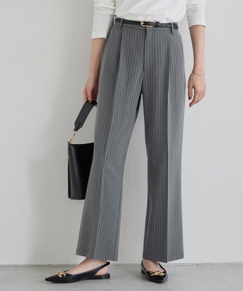 スタイリングのアクセントになる“柄が選べるストレートパンツ” さらりとした肌触りの布帛素材を使用。大人な雰囲気に導くストライプと、シーズンムード漂うチェックの2柄から選べる大人パンツ。 センタープレスを効かせたシンプルなストレートシルエットが、脚のラインをすっきりときれいに魅せてくれます。柄が程よくアクセントになり、無地トップスを合わせるだけでスタイリングが決まる一着です。 透け感:なし 伸縮性:なし 裏地:なし ポケット:あり(※バックポケットはフェイク) ファスナー:あり ※柄により生地の風合いがやや異なります。 素材の特性上、センタープレスが落ちやすくなっております。 気になる場合、プレスラインを合わせてたたみ保管いただくか、アイロンで再度プレスを当てていただくことをお勧めいたします。 洗濯方法:形状記憶加工ではございませんが、お洗濯のひと手間で綺麗なシルエットが長持ちいたします。 プレスラインを合わせてたたんだ状態でネットに入れてお洗濯後、プレスの折り目がずれないように物干竿へかけてください。 ラインが薄く感じられる場合は、アイロンを当てて頂くことをお勧めいたします。 【ブランド】 Pierrot 【お買い物を楽しむための方法】 **商品のお気に入り登録** カートボタン横の♡をクリック! 気になるアイテムが完売しても再入荷のお知らせ通知や、在庫ラスト1点の通知、セールの通知が届きます。 **ブランドのお気に入り登録** ブランドトップページの「♡お気に入りブランドに追加」をクリック! 新商品や再入荷など、クーポン配布などのお得な情報を受け取ることができます。