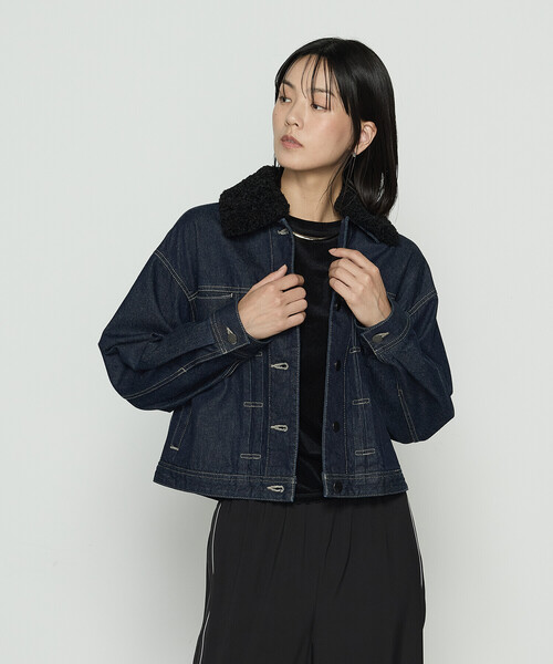 《デザイン》異素材の組み合わせでいつものデニムをアップデートさせたデニムジャケットが登場です。取り外し可能なフェイクファー襟がアイコニックです。甘さとラフさのバランス感が新鮮アイテムです。こだわりのシルエットで、ショート丈のボックスシルエットと太めの袖が、着るだけで洒落て見えるこなれシルエットを実現します。後裾にタックを施し、ふくれるコクーンシルエットは立体的でどこから見てもサマになります。取り外し可能なシープを模したフェイクファーです。ドットは円柱型のブラインドスナップです。スタイリッシュなドットなので外した時にも気になりません。ファー襟の裏の三角のポケットに襟を収納できるので外れる心配もありません。ヴィンテージをお手本にしたこだわりのディテールです。K.Tのアイコンである身頃のタックと押えステッチで、金茶・ベージュを使い分けた遊び心のあるデザインです。ロゴ入りネオバー使用(センターフロント一番下釦)、細部までこだわった大人のデニムアイテムです。ファーは冬の装いにアクセントをプラスします。取り外せば春先までシーズン問わずに着られます。 《素材》世界中のブランドから信頼を集める岡山県産のデニムを採用しています。染色から加工縫製を岡山で行っています。デニム本来のタフな表情、ビンテージ感などの本格的なかっこ良さを追求した100%のデニムです。短い太い繊維を、空気の力を利用して紡績した空紡糸を使用しています。デニムならではの粗野感とビンテージの様なシボ感が特長です。<ヴィンテージ(インディゴブルー)・ワンウォッシュ>柔らかな空紡糸をたてよこ使用し、よこ糸密度を最大限まで打ち込んだ高密度空紡オールドデニムです。空紡糸特有のシボ感・シャリ感・コシが特長です。ロープ染色のピュアインディゴ七回染めています。洗い加工でのビンテージ感や着用による色落ちでキレイなブルーに変化するデニムならではの経年劣化を楽しめるインディゴです。<グレー>たてよこ、ブラック×ブラックのデニムです。たて糸はロープ染色を四回施した中白のブラック染めです。工場独自のノウハウによりただの黒ではなく青味の深いブラックに仕上げ、クールなグレーへと色落ちします。よこ糸はチーズ染色という特殊な染色方法を採用しています。糸の内部まで染料がしっかりと浸透し、深みのあるブラックが完成します。(カラー)22ヴィンテージ(カラー)09ワンウォッシュ同様、繰り返しの洗濯を重ねる程にデニム特有の当たりが現われ、自分だけの風合いへと育っていく一着です。紡績、染色、縫製、洗い加工全て日本で行われているMADE IN JAPANの希少なデニムです。【注意事項】本体は、日本製、替衿は中国製になります。