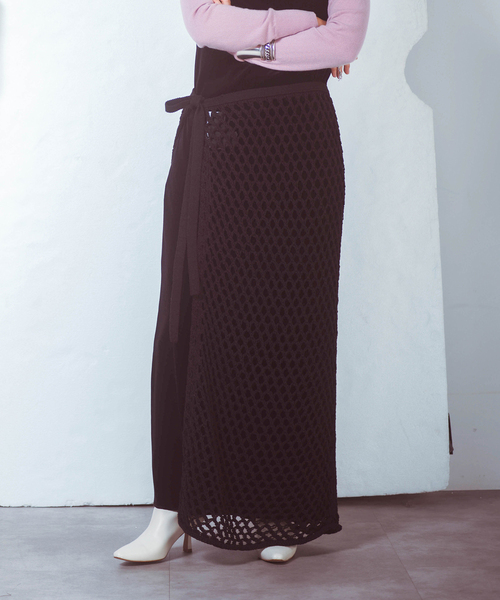 【2025AW】 CITYSHOP “O” O:オー /[fr].発音記号:o.o/ (翻訳)フランス語で「水」すなわち、人間にとって必要不可欠であるもの。 (記号)繋ぎ目の無い円型サークルは、循環を表す。 (数字)zero ゼロ:シーズンレス/タイムレス/エイジレスに愛されるものである事を表す。 MESH WRAP SKIRT / メッシュラップスカート ※素材 太番手の糸を使用したローゲージメッシュ編みラップスカート ※デザイン CITYSHOPならではのロングな丈感がこだわりです。 パンツスタイルや、ワンピースに巻いてコーディネートを楽しめます。 ********************** 透け感:あり 裏地:なし 伸縮性:なし 光沢感:なし 生地の厚さ:普通 ********************** 【スタッフ着用コメント】 《スタッフ》 身長:160cm/普段サイズ:M/着用サイズ:36 サイズ感:着丈はくるぶし位、ウエストは巻きスカートなので結び具合で調整が出来る感じでした。 素材感:ミドルゲージのコットン糸を使ったニットのメッシュ編み素材です。 着心地:何かの上にレイヤードして着る感じになりますが、チクチク感もなく着られました。コットンなので、シーズンレスで使えそうです。 ********************** ※取り扱いについては、商品についている品質表示でご確認ください。 ※店頭及び屋外での撮影画像は、光の当たり具合で色味が違って見える場合があります。 商品の色味は、スタジオ撮影の画像をご参照ください。 本体:手洗い可能