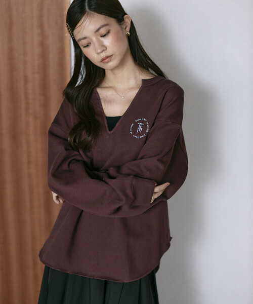 2025 Fall & Winter itemゆったりシルエットで体型カバー、上品に映えるVネックスウェット●胸に刺繍を施したVネックスウェット●ゆったりサイズで体のラインを拾わず着用可能●おしりが隠れる長めの丈感●前後差のあるラウンドカットで、タックインもしやすいデザイン●Vネックで首元すっきり、カジュアルながら女性らしい印象●Tシャツなどとレイヤードしての着こなしもおすすめ●一枚で品よく決まる、大人カジュアルなVネックスウェットおすすめコーディネート胸の刺繍がアクセントのVネックスウェットは、首元がすっきり見えるデザインで女性らしさを演出します。Tシャツやタートルネックと重ねたレイヤードスタイルは、カジュアルながらこなれ感のある着こなしに。ボトムはデニムやスリムパンツでメリハリをつけるとスタイルアップ効果も◎。丈感はおしりが隠れる長さなので、レギンスやタイトスカートとの相性も抜群です。【環境に配慮したサステナブルアイテムです】オーガニックコットンを使用したエコアイテムです。※掲載画像の商品の色味は、屋外や屋内の光の照射や角度により実物と色味が異なる場合がございます。また表示のサイズ感と実物は若干異なる場合もございますので、予めご了承ください。※着用、お取り扱いの際は、商品についている品質表示とアテンションタグを必ずご確認下さい。【Firsthand / ファーストハンド】Fashion , Sustainable , Art をテーマに、デザイン性やクォリティー、モノ作りなど、クリエイティブを重視したサステナブルなコンセプトストア。 ここでしか出会えないブランドやアイテム、ここでしかできない実体験、新しくスタイリッシュなカルチャーとファッションをここから発信していきます。フリークスストア等を構えるデイトナインターナショナルから新たに発信されるブランドです。