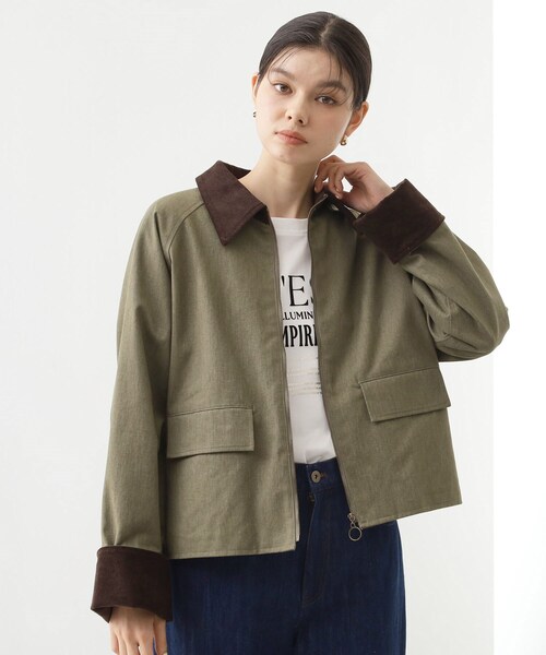【デザイン&ディテール】ワークテイストのジップアップジャケットは、ツイルのビンテージライクな素材を使用し、洗練された秋のトレンドを取り入れた一枚です。衿と袖口はコーデュロイ素材に切り替えられており、素材の違いがアクセントとなって個性的な印象をプラス。袖はそのまま着用してもお洒落に決まり、裏地はチェック柄で全体のデザインに味わい深さを与えています。【シルエット&着こなし】ショート丈のデザインは、スカートやワイドボトムとの相性が◎。コンパクトながらも程よい存在感で、カジュアルな中にも大人っぽい洗練感を演出できます。シンプルなジップアップなので前面はしっかりとしたフィット感を保ちつつ、裏地のチェック柄がひと味違ったコーディネートを提案してくれます。【おすすめポイント】・オフィスやカジュアルなデイリーシーンはもちろん、アウトドアや秋のイベントにも活躍するアイテム。・素材の切り替えや裏地チェックなど、細部にこだわったデザインがトレンド感を引き立て、飽きのこないスタイルを実現。・ビンテージテイストとワークウェアの要素が融合した季節感あふれる一着です。このジップアップジャケットは、秋のコーディネートに華やかさと個性をプラスしたい方におすすめです。【仕様】・ポケット数:横×2・裏地あり※照明の関係により、実際よりも色味が違って見える場合があります。また、パソコン・スマートフォンなどの環境により、若干製品と画像のカラーが異なる場合もございます。モデル情報:身長166cm B72 W62 H86 着用サイズ:12(M)店舗へのお問い合わせ商品番号:040-44010●製品寸法:12(M):着丈54cm B110cm 裄丈74cm13(L):着丈55cm B113cm 裄丈75cm備考:重量:約590g(サンプルサイズ)