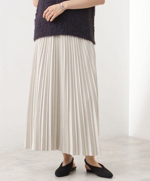 【デザイン】マイクロスエードを使用したプリーツスカートは、柔らかな素材感が特徴で、上品なドレープと動きやすさを兼ね備えた逸品です。ウエストはファスナー仕様になっており、着脱がスムーズで快適にフィットします。全体のプリーツディテールがシルエットに美しい動きをプラスし、汎用性の高いデザインに仕上がっています。【素材&着心地】マイクロスエードならではの柔らかく滑らかな肌触りとしなやかなドレープ感が、デイリーにも特別なシーンにもマッチする着用感を実現。良質な質感が、カジュアルとキレイめの両面で活躍し、飽きのこないスタイルをお楽しみいただけます。【着こなしポイント】ニット、スウェット、シャツなどと合わせて幅広いスタイルに対応。シンプルなトップスとの組み合わせはもちろん、重ね着インナーとしても、一枚で存在感を放つスカートです。どんなシーンでも上品に決まるため、オフィスカジュアルから週末のリラックススタイルまで幅広いコーディネートを楽しむことができます。【仕様】・ポケットなし・左脇ファスナー・ウエスト後ろゴム・裏地あり※照明の関係により、実際よりも色味が違って見える場合があります。また、パソコン・スマートフォンなどの環境により、若干製品と画像のカラーが異なる場合もございます。モデル情報:身長166cm B72 W62 H86 着用サイズ:12(M)店舗へのお問い合わせ商品番号:040-74006●製品寸法:12(M):W68cm 総丈83cm13(L):W71cm 総丈85cm備考: