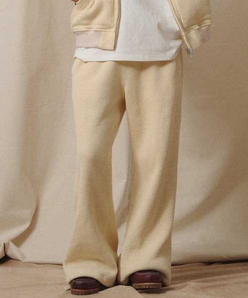 ワッフルとフリースをボンディングした "HUTON" シリーズ。 素材は例年よりフリースのボリューム感を増しつつ軽量化。 裾フレアで綺麗に履けます。 【Universal Style Wear】「Daily Play&Work」 ONとOFFをわきまえた大人の男女のアーバンリアルクローズ。 遊ぶときは遊び、働くときは働く、大人の日常を豊かにするスタイルを提案します。 家族との行楽、仕事中、それぞれの「動き」に対応する素材選定、「着る=生活」を意識したまさに日常に寄り添った”服”作りを目指します。 【製品お取り扱い上のご注意】 ・濡れた状態や強い摩擦により他のものに色移りする恐れがありますのでご注意下さい。 ・乾いた状態で強く擦られると色移りする恐れがありますのでご注意下さい。 ・お洗濯は色落ち、移染の恐れがありますので、単独で洗って下さい。 ・洗濯後は速やかに形を整えてから干して下さい。 ・濡れたまま他のものと重ねて放置しますと色泣きしたり白いものに色移りすることがありますのでご注意下さい。 ・繊維製品の為、1~2cmの誤差がある場合がございます。予めご了承下さい。 ※掲載画像の商品の色味は、屋外や屋内の光の照射や角度により実物と色味が異なる場合がございます。また表示のサイズ感と実物は若干異なる場合もございますので、予めご了承ください。 ※着用、お取り扱いの際は、商品についている品質表示とアテンションタグを必ずご確認下さい。 【商品のお気に入り登録】 商品のお気に入り登録をしていただくと、再入荷、残り1点、セールなどの通知を受け取ることが出来ます。 【ブランドお気に入り登録】 ブランドお気に入り登録をしていただくと、新商品や再入荷、ショップのおすすめトピックスなど、いち早くブランドのお得な情報を受け取ることが出来ます。