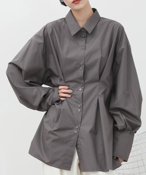 タックディテールがコーディネートのポイントになるデザインシャツ 柔らかいカラーが女性らしい抜け感をプラス コーディネートが楽しくなる主役ブラウス ◇DESIGN ・着るだけでコーディネートにニュアンスを演出するウエストタックシャツ。 ・ボディラインに沿うように計算されたウエスト部分のタックが◎。 ・体のラインを拾いすぎず、自然なラインが入っているためスタイルアップして見えるデザインが嬉しいポイント。 ・細かなディテールにこだわったダブルボタンが特徴。(1つはフェイク仕様) ・ヒップをカバーしてくれる長め丈で、着心地楽ちんなゆとりのあるシルエット。 ◇FABRIC ・さらりとした肌触りの布帛生地を使用。 ・シワになりにくく日常使いにぴったり。 ・程よい厚みで着こなし次第ではロングシーズン活躍します。 ◇STYLING ・1枚で着るだけでコーデが決まるようなデザイン性の高い今季らしいアイテムです。 ・スラックスやデニム、スカートなど、どんなボトムとも相性抜群。 ・インナーやレイヤードスタイルに活用しやすく、お好みの雰囲気でスタイリングいただけます。 【NOGLE/ノグル】 上品さと遊び心をもちながら、 変わらずに心地よく着続けられるもの。 ■公式インスタグラム @nogle_official ★商品のお気に入り登録→【カートに入れる】右側のハートマークをクリック 完売カラーの再入荷通知や、ラスト1点の通知、セールの通知も受け取ることができます。 ※店頭及び屋外での撮影画像は、光の当たり具合で色味が違って見える場合があります。またご覧いただきますモニターや使用環境により実際の商品と多少色味が異なって表示される場合がございます。 予めご了承をお願いいたします。