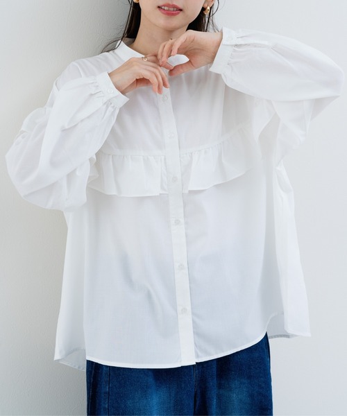 華やぎを添える袖フリルブラウス 【大人フェミニンを叶える一枚】 ■商品の特徴 袖から身頃にかけてあしらったフリルがポイントになったデザインブラウス。 甘さ控えめで大人の女性にも取り入れやすいアイテムです。 ■詳細説明 ふんわりとしたシルエットで体のラインを拾いにくく、着やすい一枚。 オンオフ問わず活躍する万能ブラウスです。 ■生地・素材感 …………………… 透け感:ややあり(ホワイトはインナー着用を推奨) 伸縮性:なし 生地の厚さ:普通 生地の柔らかさ:柔らかい 裏地:なし ポケット:なし …………………… ■素材・混率情報 …………………… ポリエステル80% 綿20% …………………… ■サイズ情報(cm) …………………… 着丈:70cm バスト:120cm 裄丈:81.5cm 袖幅:24.5cm 天幅:17cm …………………… ■コーディネート デニムでカジュアルダウンさせても、スカートで女性らしくまとめても◎。 アクセサリーを合わせれば華やかさがアップします。 ■お気に入り登録 ★《お気に入り登録》でお得な情報がいっぱい★ ・「商品のお気に入り登録」で再入荷通知や、ラストの通知、セール通知も受け取ることができます ・「ブランドのお気に入り登録」で新商品や再入荷など、お得な情報を受け取ることができます! ※商品画像は撮影時の光や角度により、実物の色味と異なって見える場合がございます ※撮影はサンプル品を使用しており、表示のサイズ感も実物とは若干異なる場合もございますので、予めご了承ください ※生産時期により色・素材・サイズ感など多少異なる場合がございます。予めご了承ください ※他のキャンペーンにより、期間中に価格が変動する場合があります ※セールは予告なく終了させていただく場合もあります。