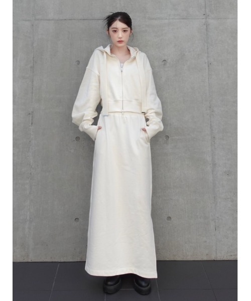 【シンプルでスタイリッシュ。スウェット素材ですっきりしたIラインのタイトスカート】【Design/Styling】パーカーと同素材で仕立てた、クリーンな印象のストレートロングスカート。無駄のないすっきりとしたIラインシルエットが、スタイルアップ効果を叶えつつ、洗練されたムードを演出します。飛行機に長時間乗る時などにもぴったりな、楽なのにスタイリッシュな一枚です。ポケットもついている便利仕様。同素材のコンパクトフルジップパーカー(FWCT254187)と合わせるセットアップスタイルや、ルーズなニットなどを合わせるスタイリングもおすすめ。カラーは3色をご用意。女性らしいOWHT、カジュアルな杢調のGRY、ベーシックなNVYで展開しています。※照明の関係により、実際よりも色味が違って見える場合があります。またパソコン・スマートフォンなどの環境により、若干製品と画像のカラーが異なる場合もございます。予めご了承ください。商品の色味は、商品単品画像をご参照下さい。※商品画像はサンプルのため、色味やサイズ等の仕様に変更がある場合がございますので、予めご了承ください。