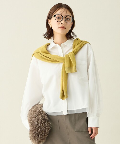 チュール素材とクロップド丈が今っぽいデザインシャツ デザイン ・内側にシャツ地、外側にチュールの二枚仕立てのシャツ ・一枚でトレンドの重ね着風のスタイルが完成・クロップド丈でスタイルアップ効果も○ ※チュールの胸ポケットがありますが、耐久性は無いため重いものなどを入れないようご注意ください。 素材 ・内側はさらっとした手触りでハリのあるシャツ ・外側はソフトなポリエステルチュール ・洗濯機でお洗濯できるのも嬉しい スタイリング ・ボリュームパンツやハイウエストめなボトムと相性抜群 ・羽織としての着こなしもオススメ 【ANY/エニィ】 「もっと自由で、もっと実用的な、手の届く“ちょうどよさ”」 快適な着心地と美しいカラー展開にこだわり、旬なムードを意識した感度の高いカジュアルウエアを提案します。 ※モデル着用画像はサンプルを使用している為、実際にお届けする商品と仕様、加工、サイズが若干異なる場合がございます。予めご了承ください。 ※掲載画像はご利用いただくPCやスマホの画面環境の都合上、実際の商品と色合いが異なって見える場合がございます。 ※お取り扱いに関しましては、商品に付属のアテンションタグをご覧ください。 ※サイト上のカラー名と、お届け商品に記載されているカラー名が異なる場合がございます。 ※生産時期により色・素材・サイズ感など多少異なる場合がございます。予めご了承ください。 ※ブランド名変更に伴い、旧ブランド名タグの商品が含まれる場合があります。ご了承ください。 any FAM/anyFAM/any fam/エニファム/エニィファム/チュールシャツ/クロップドシャツ/短丈/スタイルアップ/オフィスコーデ/秋冬コーデ/レイヤードアイテム/きれいめカジュアル 【お買い物をより楽しんで頂くために】 ▼商品のお気に入り登録 ハートマークをクリックし、お好きなカラーを選んでお気に入りに登録が完了!完売カラーの再入荷通知や、ラスト1点の通知、セールの通知も受け取ることができます。 ▼ブランドのお気に入り登録 新商品や再入荷等、いち早くブランドのお得な情報を受け取ることができます。 ※他のキャンペーンにより、期間中に価格が変動する場合があります。 ※セールは予告なく終了させていただく場合もあります。 洗濯表示 【本体のみ】40℃まで弱洗濯可 塩素系漂白不可 タンブル乾燥不可 日陰つり干し乾燥 アイロンは160℃まで ドライクリーニング(石油系)可 弱いウェットクリーニング可
