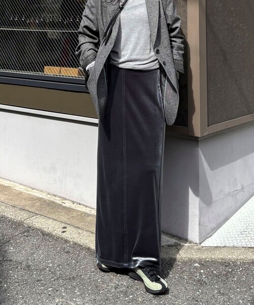 "◇fredy emue◇ 【2025 AW】 上品で女性らしいシルエットのベロアタイトスカート ●point ・秋冬らしいベロア素材で仕立てたタイトスカート ・光沢感のある素材が、コーデに季節感と上品さをプラス ・程よくフィットするシルエットで、女性らしいラインを演出 ・さりげないブランドロゴのプレートもポイント ・ウエストは後ろゴム仕様で着脱しやすく、柔らかな素材感で快適な着心地 ・ベルトループがあるので、細めのベルトをアクセントにプラスするのも◎ ・シンプルなデザインでトップスを選ばず、デイリーからお出かけまで幅広く活躍 ●STAFF着用コメント 身長156cm/38サイズ着用:着丈は足首にかかるくらいの長め丈で、大人っぽく上品に着られました。38サイズは程よくフィット感があり、ラインをきれいに見せてくれます!後ろゴム仕様でラクに穿けるのも嬉しいポイントです◎ 透け感:なし 裏地:なし 伸縮性:あり 光沢感:あり 洗濯:手洗い可 ◇商品のお気に入り登録◇ 気になる商品は、お気に入り登録がオススメです! クーポン情報、入荷情報が、通知されるようになります。 ●お取扱い上のご注意● *商品を長くご愛用していただきたいため、アテンションタグがある場合は必ずご確認の上、着用又はお取り扱い下さい。 *画像の商品はサンプルとなりますので実際の商品と仕様(主にファスナー・釦等の付属品)、加工、サイズが若干異なる場合がございます。 *店頭及び屋外での撮影画像は、光の当たり具合で色味が違って見える場合があります。商品の色味は、スタジオ撮影の画像をご参照下さい。 *商品画像に関しては出来る限り忠実に表示出来るよう努めておりますが、お客様がご利用のモニターの設定及び特性により、実際の商品と比較し色味に若干の誤差が生じる場合があります。 *製品洗い加工の商品は、多少の歪み、シワなどが見られたり、風合いやサイズ等が1枚1枚異なります。汗や雨等で濡れた時や、摩擦により色落ちし、他の衣料を汚すことがありますので(特に濃色のもの)ご注意ください。 *この製品は、生地の特性上引っかかると糸が飛び出しやすい傾向があります。着用時にはベルトやバック、周囲の壁など表面の粗いものとの摩擦や引っかかりにご注意ください。 *この製品は、汗や雨等で濡れた時や、摩擦により色落ちし、他の衣料を汚すことがありますので(特に濃色もの)ご注意下さい。 *この製品は素材の特性上、座りジワや摩擦によって、アタリ・テカリが出やすくなります。低温のスチームアイロンを浮かしてかける、または衣料用ブラシをかけますと軽減されます。ご注意の上、ご着用ください。 ※サンプルでの採寸のため、サイズ表はあくまで目安となります。予めご了承ください。"